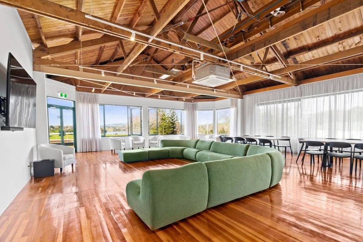 The Rob Waddell Lodge located on site at Mighty River Domain is surrounded by beautiful Lodge lawns, looks out over Lake Karāpiro and is just walking distance to Podium Cafe and playground. The Lodge sleeps 41 people in 13 rooms; each room has a bunk bed and a single bed.