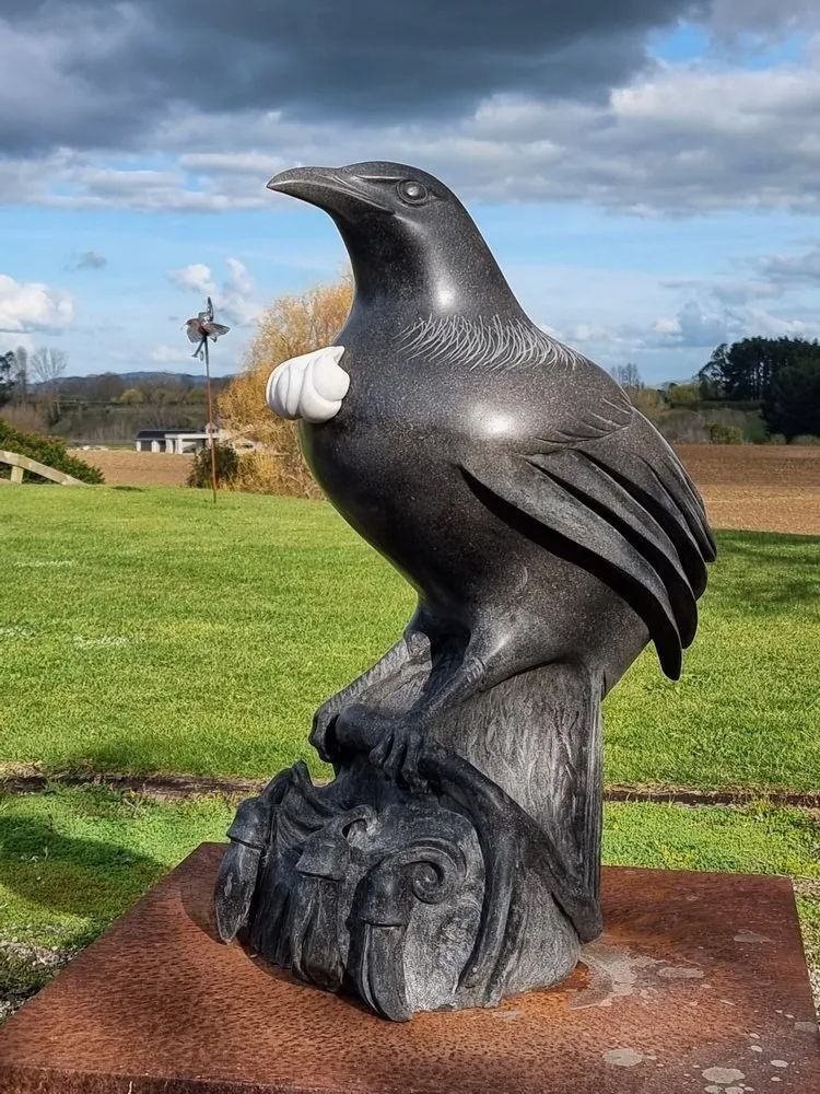 The gallery features an infinity sculpture lawn with stunning rural views of Pirongia and Maungatautari. The entrance is landscaped with New Zealand rocks, stones and plants to provide a dramatic setting for outdoor sculpture.