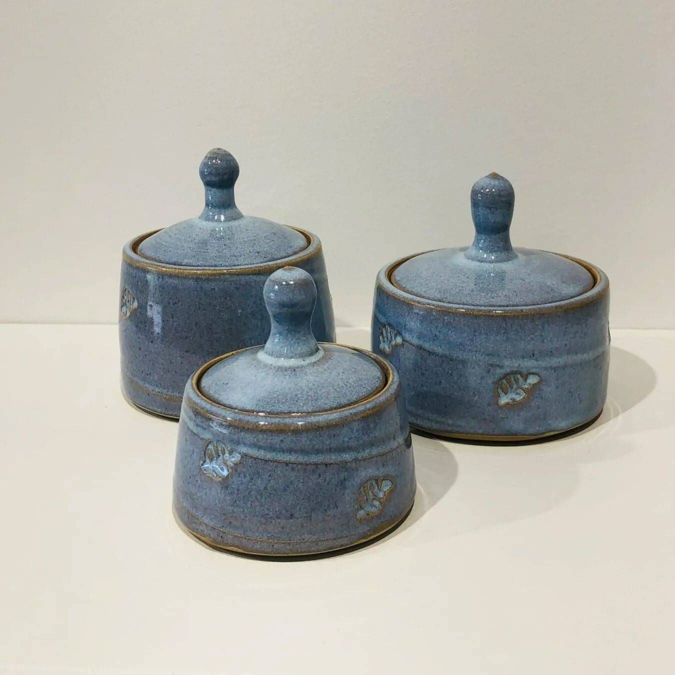 Recently, she has come back to her passion for pottery and is making a wide range of stoneware from her studio.